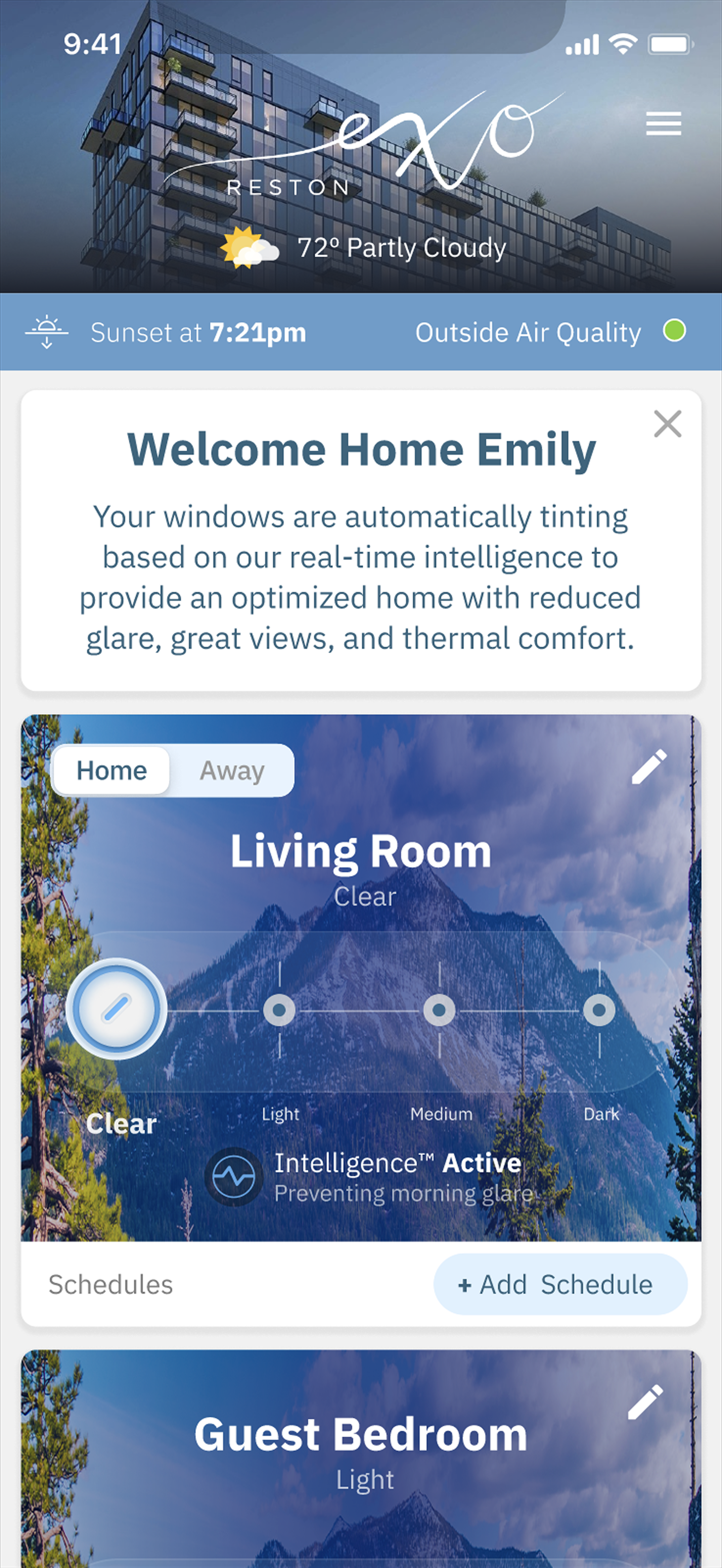 I worked on the creation of a new mobile app experience called View Wellness for a smart window platform that automatically adjusts window tint. The underlying technology controlled light and glare, but the product vision expanded to position the system as a wellness tool rather than just an environmental control. My role was to design the foundational app experience that translated smart glass technology into a daily health and lifestyle product.